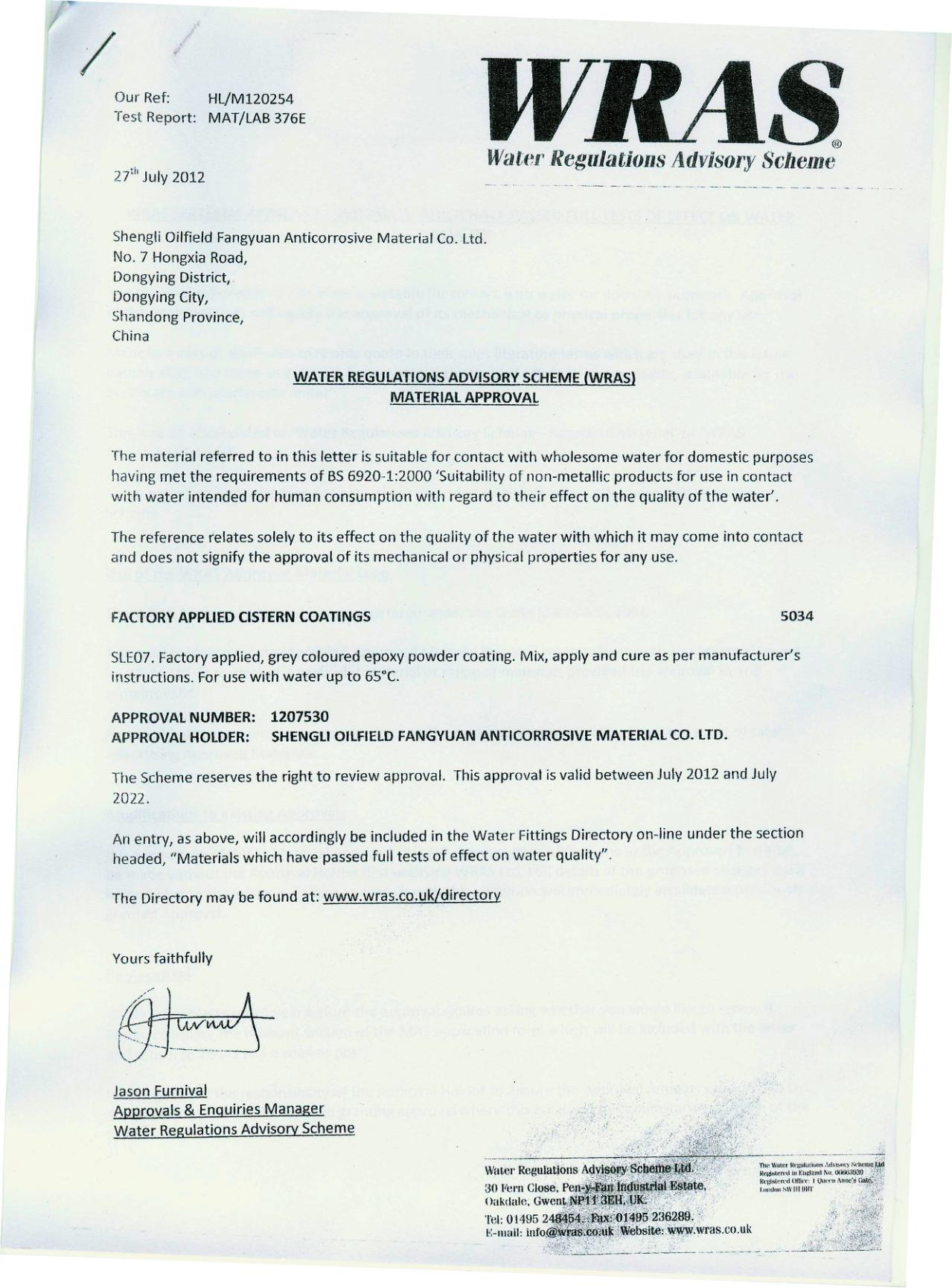 飲用水衛生安全產(chǎn)品衛生許可證批件